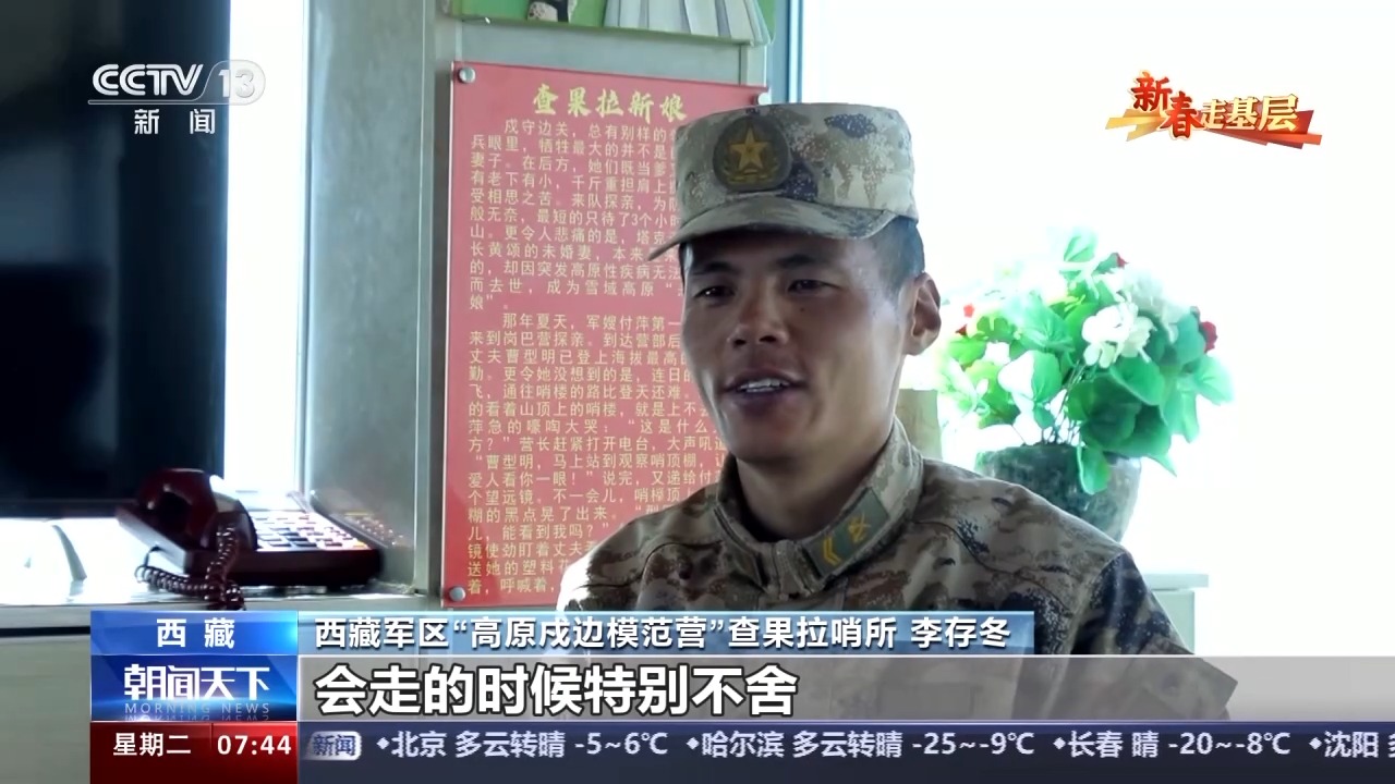 西藏軍區(qū)“高原戍邊模范營”查果拉哨所 李存冬:因?yàn)橛袊庞屑?,只要國守好了,才能有家,才能更好激勵我們戍守邊關(guān),能夠更好扎根高原。