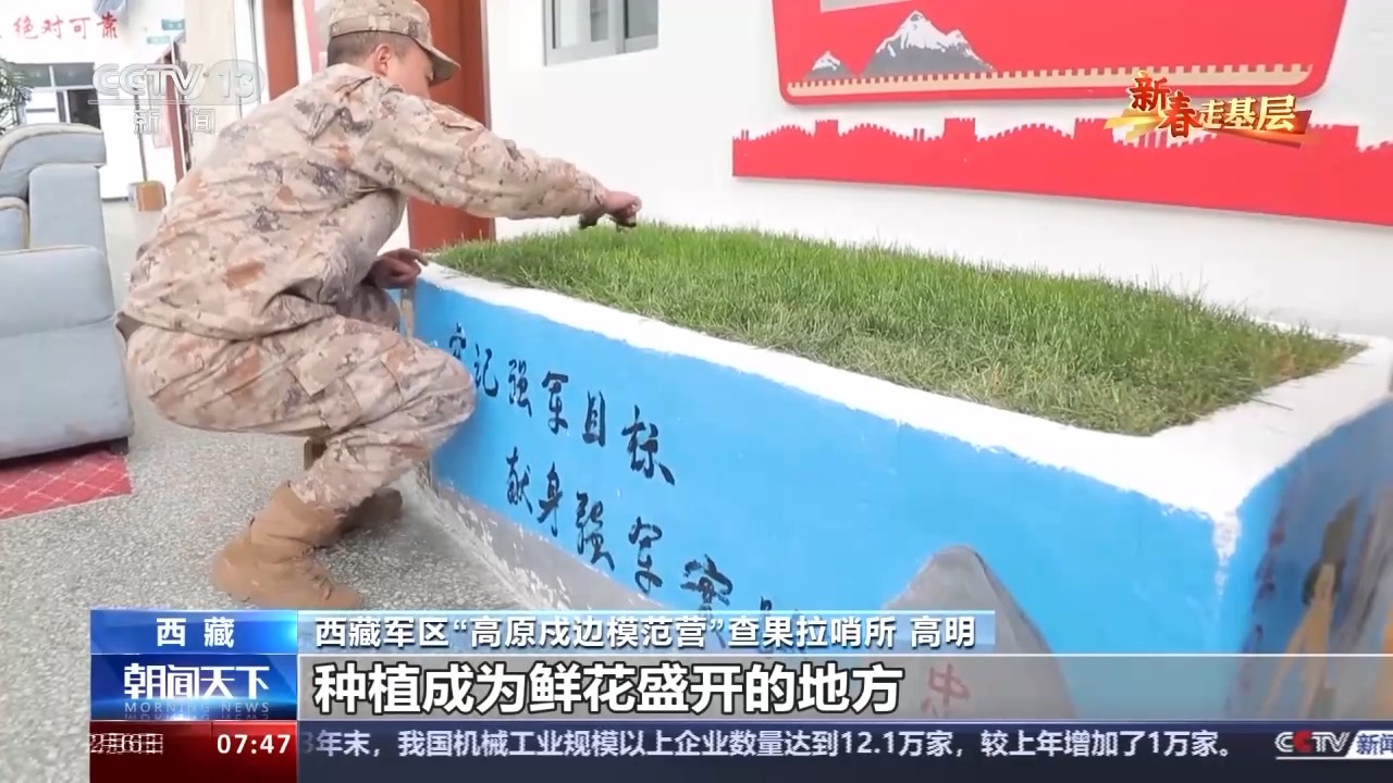 西藏軍區(qū)“高原戍邊模范營”查果拉哨所 高明:我們的戰(zhàn)士現(xiàn)在正在養(yǎng)護(hù)我們的花草。在海拔5318米的這個地方,我們的花草非常難長,為了能夠營造這種氛圍,我們還是想把這個地方能夠種植成為鮮花盛開的地方。