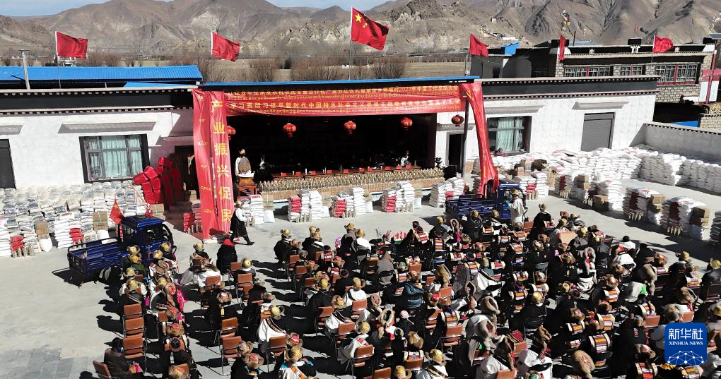 2月3日,日喀則市江孜縣紫金鄉(xiāng)努堆村在舉行分紅大會(huì)。新華社記者 洛卓嘉措 攝