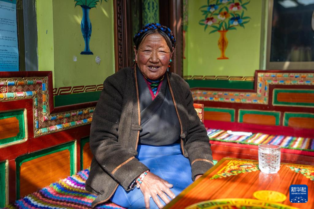 措姆是村里第三高齡的人,談?wù)f起村里的變化,她有很多話要說?!艾F(xiàn)在的日子幸福,冬天也不怕風雪……真心感謝黨的好政策!”