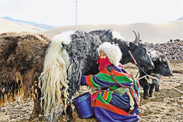 “這些都是咱們村合作社的牦牛,我們給合作社放牧、擠奶、制作酥油和奶渣,不僅有務(wù)工補(bǔ)貼,年底還能分紅。去年,我們家總收入有6.7萬元左右,日子真是越過越有盼頭了?!倍静輬錾希诜拍恋哪撩裆8伦楷敻吲d地說。