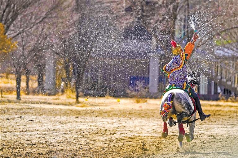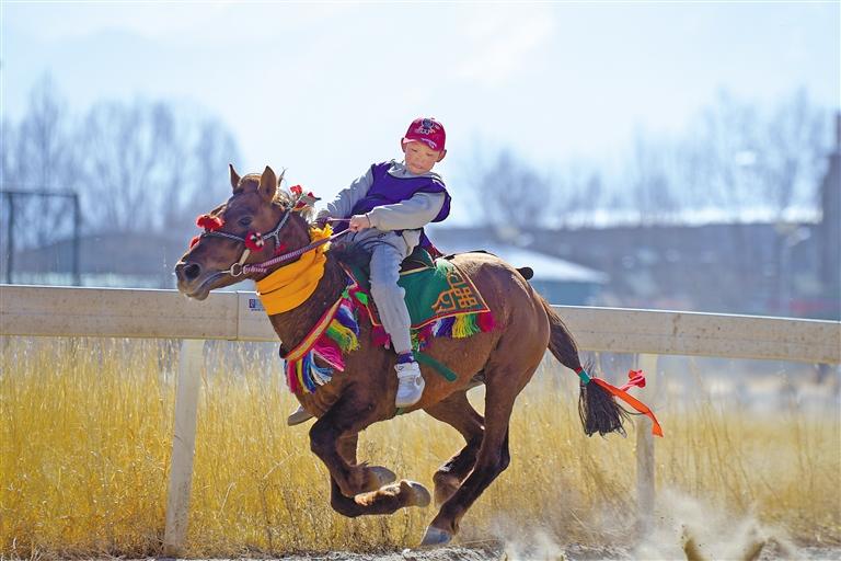 2月12日藏歷新年初三,主題為“體育大拜年,健康迎新春”的民族傳統(tǒng)馬術表演暨民族賽馬活動在拉薩賽馬場舉行。
