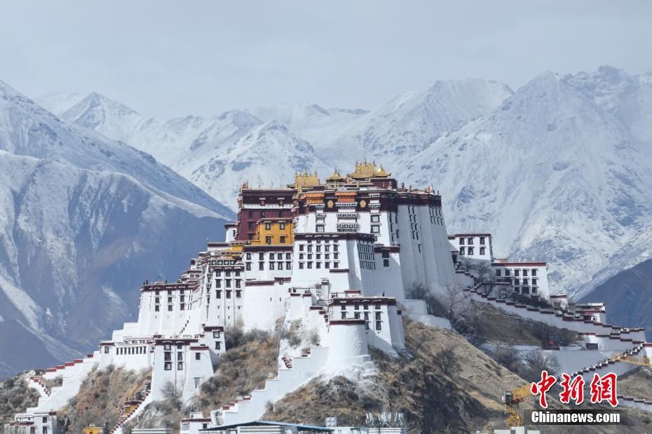2月15日,西藏拉薩,雪后的拉薩周圍群山白雪皚皚,布達拉宮風景如畫。中新社記者 貢嘎來松 攝