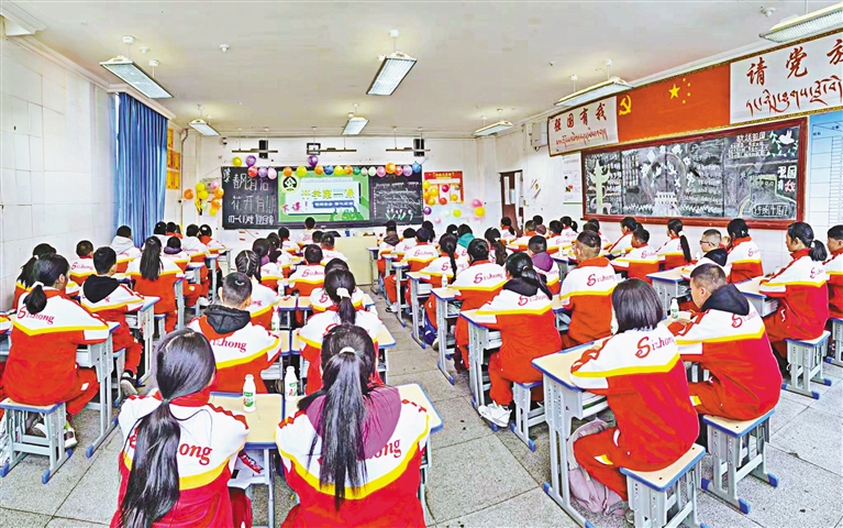 在林芝市第二小學(xué),學(xué)校布置了喜慶的龍年裝飾,教室文化墻裝點(diǎn)一新,老師們分發(fā)起糖果、牛奶。溫暖的“小驚喜”迅速調(diào)動(dòng)起學(xué)生返校的好心情;波密縣完全小學(xué)利用寒假對(duì)所有教室進(jìn)行了粉刷、維修,對(duì)學(xué)生食堂進(jìn)行了升級(jí)改造,干凈、整潔的校園,讓學(xué)生們格外激動(dòng)……“今天很開心,見到了老師和同學(xué),也見到了更美麗的校園。新的學(xué)期,我要繼續(xù)做好班干部工作,取得更大的進(jìn)步?!绷种ナ械诙W(xué)學(xué)生索朗次仁信心滿滿地說(shuō)。