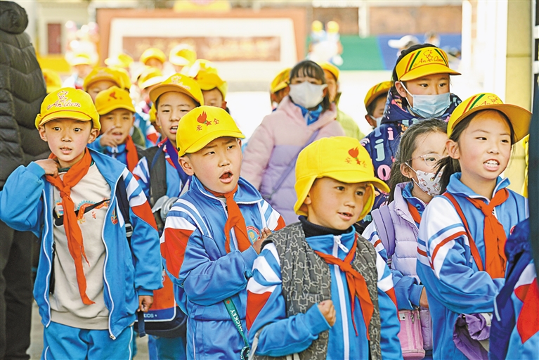 2月28日,拉薩市第一小學(xué)的孩子們上完開學(xué)第一天的課程后,開心地走出校園。記者 李洲