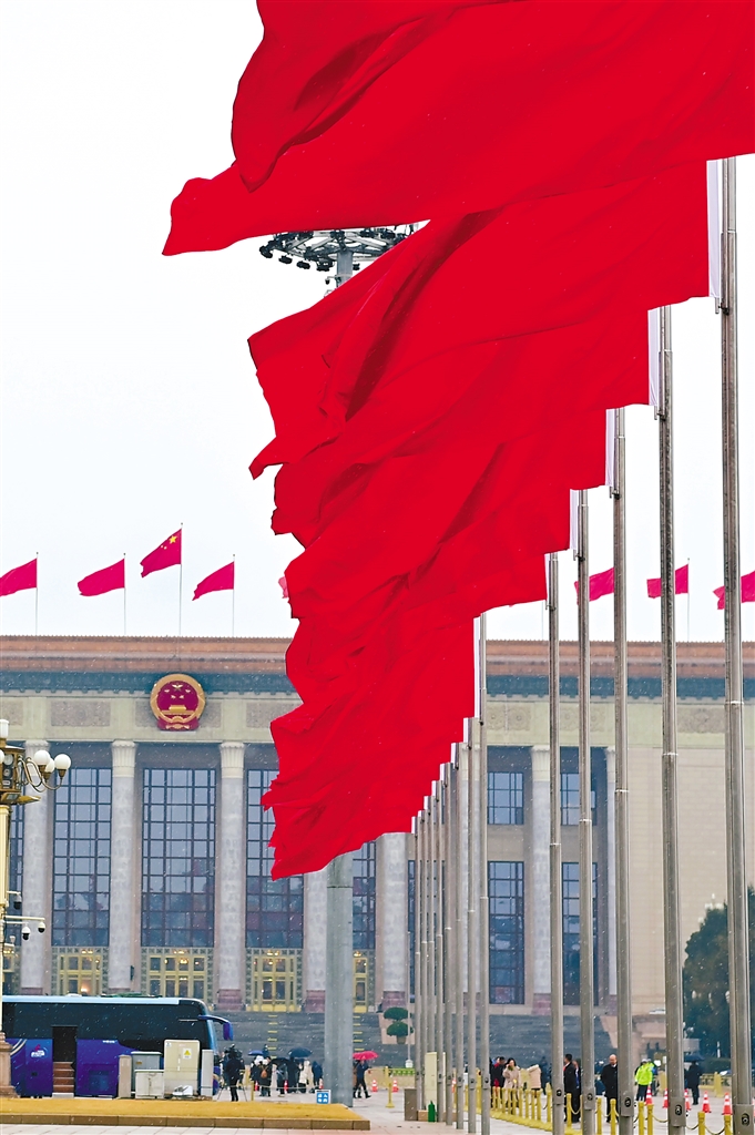 圖為全國人大代表聆聽政府工作報(bào)告后,滿懷信心走出人民大會(huì)堂。記者 旦增西旦 攝