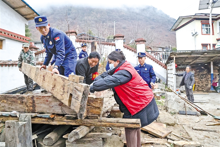 圖為3月4日,墨脫縣格當(dāng)鄉(xiāng)新時代文明實踐中心聯(lián)合林芝市森林消防支隊墨脫駐防分隊,成立一支多功能志愿服務(wù)隊,深入群眾家中開展法律援助、環(huán)境整治等活動。郎玲 記者 王敏 攝