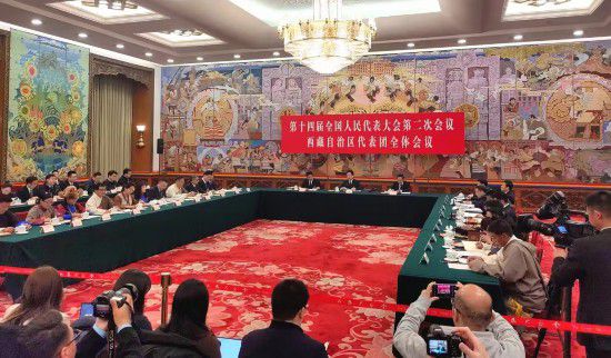 “西藏有大大小小1500多個(gè)湖泊,‘措’在藏語(yǔ)中就是湖泊的意思,游客常開(kāi)玩笑說(shuō),這一路上,總是一‘措’再‘措’。”3月6日下午,出席十四屆全國(guó)人大二次會(huì)議的西藏代表團(tuán)舉行開(kāi)放團(tuán)組會(huì)議,全國(guó)人大代表、西藏自治區(qū)主席嚴(yán)金海打趣地說(shuō)。