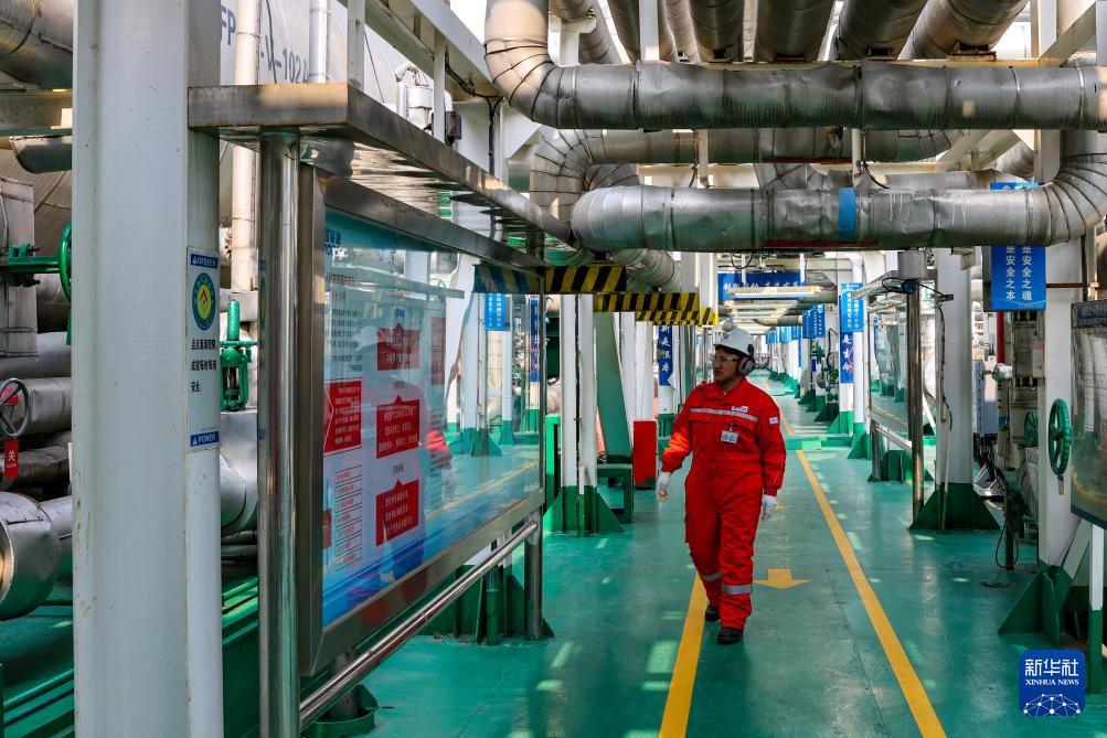 強巴在秦皇島32-6油田“渤海世紀號”(FPSO)16萬噸級浮式生產(chǎn)儲油裝置上(3月7日攝)。新華社記者 姜帆 攝