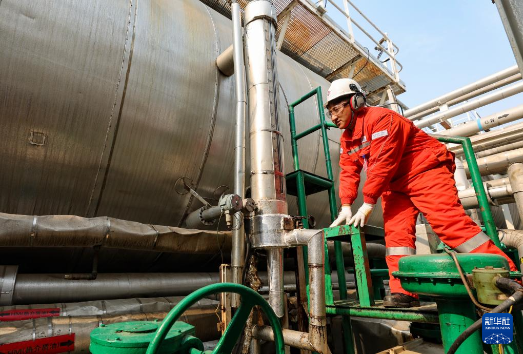 強巴在秦皇島32-6油田“渤海世紀號”(FPSO)16萬噸級浮式生產(chǎn)儲油裝置上觀察設備運轉(zhuǎn)情況(3月7日攝)。新華社記者 黃耀漫 攝