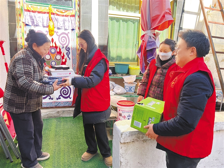 連日來(lái),拉薩市城關(guān)區(qū)納金街道新時(shí)代文明實(shí)踐所志愿者們向孤寡老人發(fā)放慰問品及法律宣傳手冊(cè),為老人提供幫助、送去關(guān)懷。