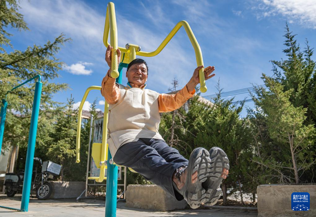 2024年3月28日 普次仁在小區(qū)內(nèi)鍛煉身體(3月23日攝)。新華社記者 丁增尼達(dá) 攝