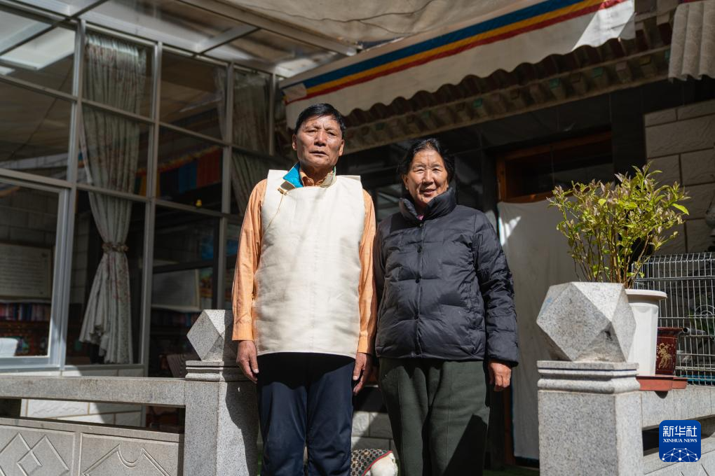 2024年3月28日 普次仁和妻子尼瑪倉(cāng)姆合影(3月23日攝)。新華社記者 丁汀 攝