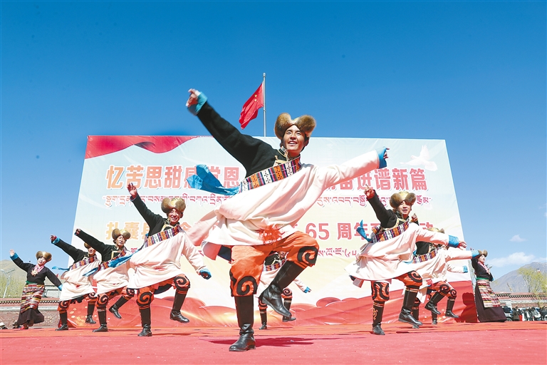 初春的日喀則暖陽高照,微風(fēng)拂面。3月28日,自治區(qū)人民檢察院駐昂仁縣卡嘎鎮(zhèn)雪村、秋窩鄉(xiāng)南木加村工作隊(duì)組織農(nóng)牧民群眾共同紀(jì)念西藏民主改革65周年。駐村工作隊(duì)用通俗易懂的語言講解了西藏民主改革65年來的發(fā)展歷程,教育引導(dǎo)黨員群眾不忘舊西藏的苦、珍惜新西藏的甜。日喀則邊境管理支隊(duì)龍中邊境派出所聯(lián)合崗巴縣龍中鄉(xiāng)政府,舉行紀(jì)念西藏百萬農(nóng)奴解放65周年系列活動(dòng)。活動(dòng)中,派出所民警、鄉(xiāng)政府工作人員、鄉(xiāng)學(xué)校全體師生以及廣大群眾紛紛上臺(tái),通過生動(dòng)歡快的歌舞表演,表達(dá)聽黨話、感黨恩、跟黨走的堅(jiān)定決心和信心。