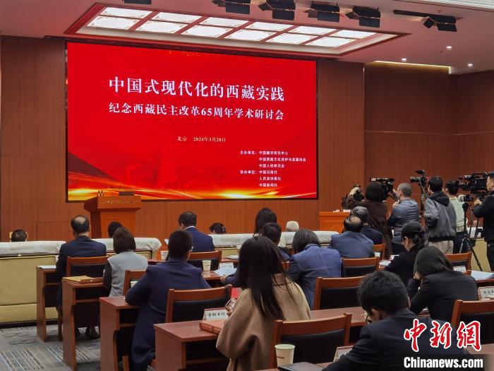 3月28日,紀(jì)念西藏民主改革65周年學(xué)術(shù)研討會(huì)在北京舉行,會(huì)議以“中國式現(xiàn)代化的西藏實(shí)踐”為主題。 徐雪瑩 攝