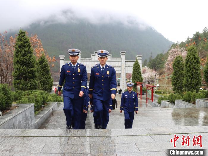 圖為波密中隊(duì)指戰(zhàn)員為烈士墓碑擦拭浮塵。林芝市森林消防支隊(duì)波密縣中隊(duì)供圖