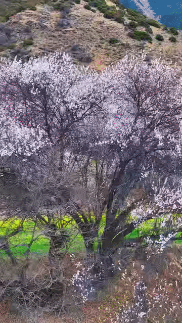 雪山之下、峽谷之間,成片的桃花林綿延至河谷山川,蔚然成粉海,游客紛紛聞香而來。
