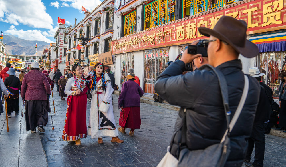 以八廓街為代表的古城區(qū)有56處古建筑大院,古城區(qū)內居住著以藏族為主的藏、漢、回、門巴等20多個民族的居民。千百年來,各民族在這里美美與共、和合共生。