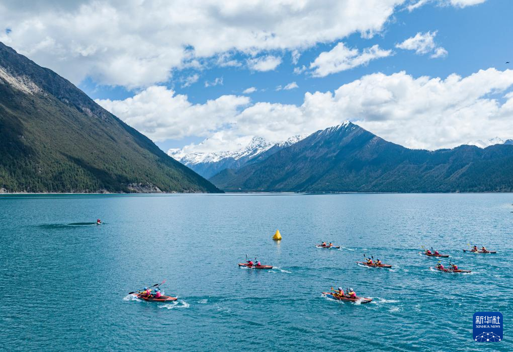 4月20日,2024年巴松措國際漂流公開賽在西藏林芝市工布江達縣開賽。30余支隊伍在巴松措的湖面上展開角逐,完成兩人漂流艇競速賽和四人漂流艇排位賽的比拼。
