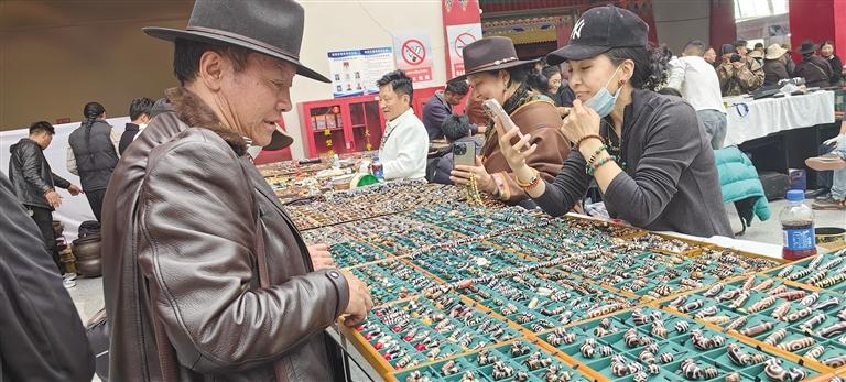 記者在展廳看到,參展商家攤位分布有序,前來購買各種珠寶、藝術(shù)品的顧客絡(luò)繹不絕。活動現(xiàn)場,匯聚了來自全國各地的珠寶商、藝術(shù)家、收藏家及投資者。博覽會期間,主辦方舉辦了珠寶、藝術(shù)品鑒定評估等商貿(mào)活動,以及珠寶藝術(shù)品講座、研討會等文化交流活動,為與會者提供了一個全面了解西藏珠寶及藝術(shù)品的機會,同時也為珠寶商、藝術(shù)家和投資者搭建了一個交流與合作的平臺。文/圖 記者 張雪芳