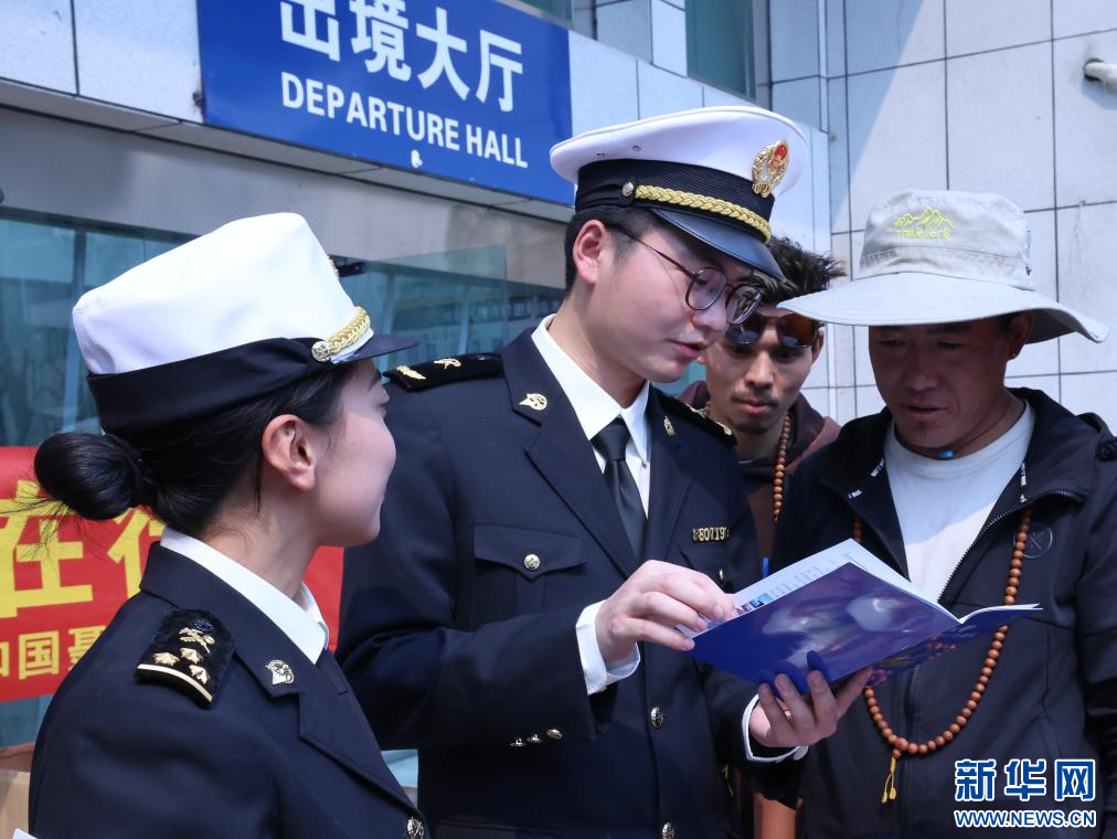 拉薩海關(guān)所屬聶拉木海關(guān)工作人員開(kāi)展普法宣傳。(拉薩海關(guān)供圖)