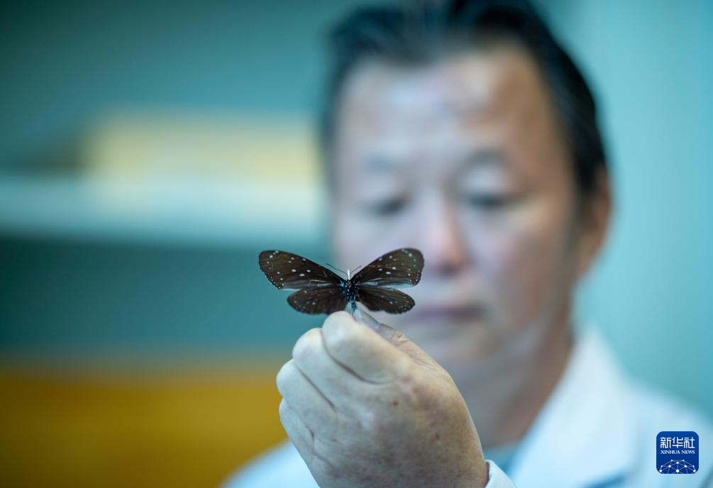 達(dá)娃在位于拉薩的西藏自治區(qū)高原生物研究所識(shí)別蝴蝶樣品特征(4月22日攝)。新華社記者 旦增尼瑪曲珠 攝