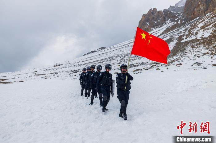 圖為貢當邊境派出所民警正在進行巡邏踏查。日喀則邊境管理支隊供圖