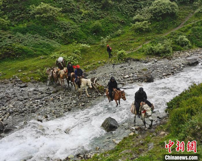 圖為貢當邊境派出所民警為“蟲草季”護航。日喀則邊境管理支隊供圖