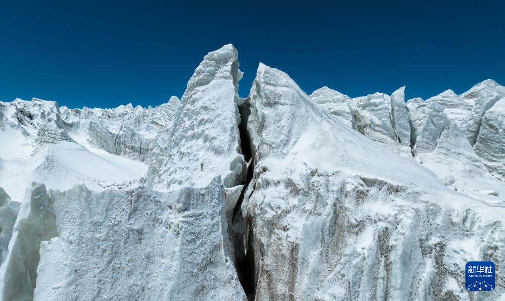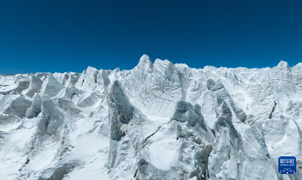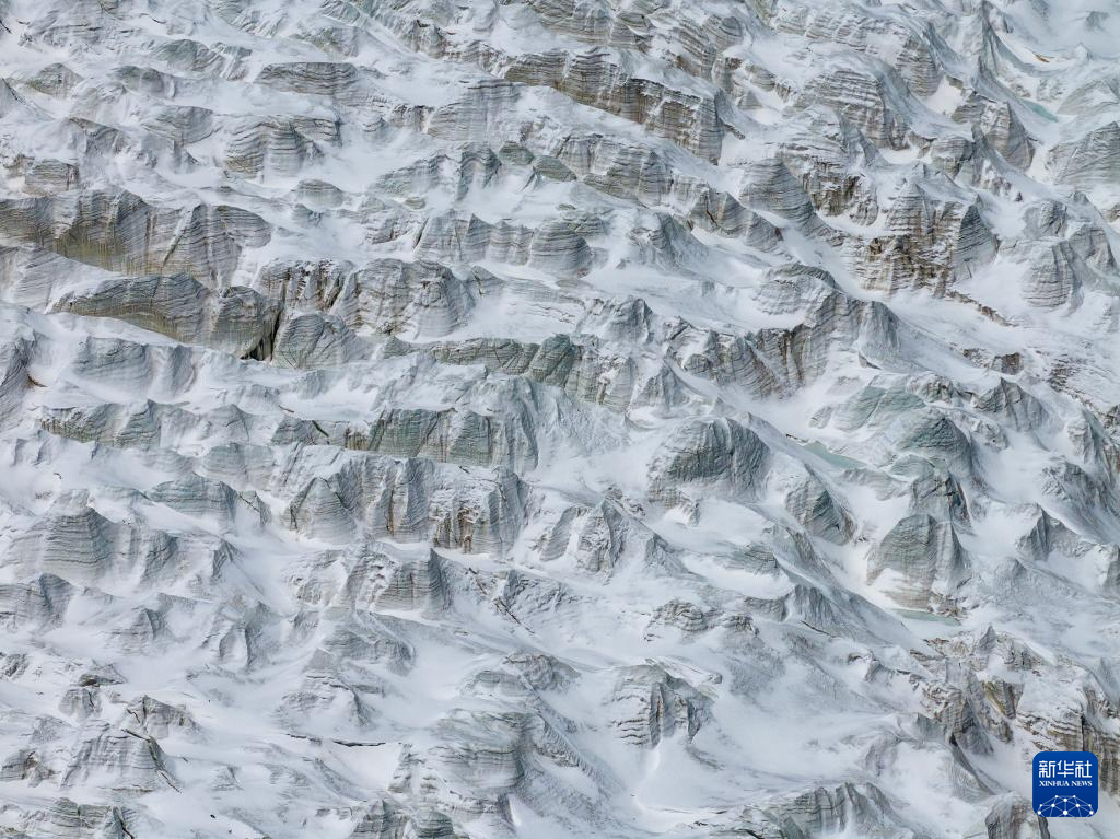 藏色崗日冰川冰塔林(無(wú)人機(jī)照片,5月11日攝)。新華社記者 姜帆 攝