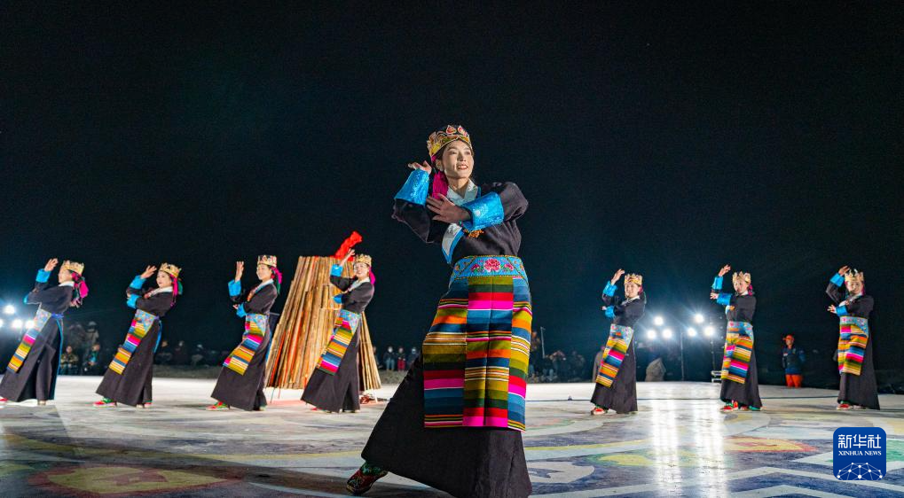 舞蹈演員在納木錯開湖篝火晚會現(xiàn)場表演(5月18日攝)。新華社記者 丁增尼達 攝