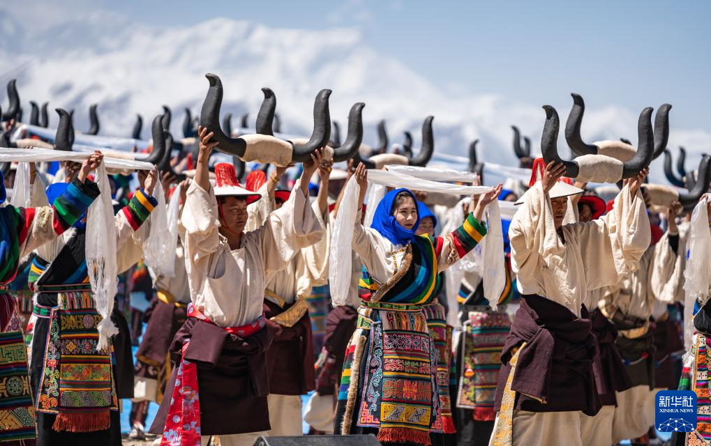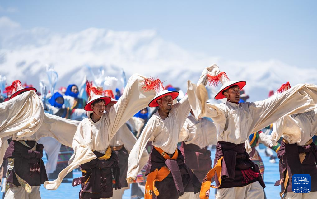 舞蹈演員正在納木錯開湖活動現(xiàn)場表演(5月19日攝)。新華社記者 丁增尼達 攝