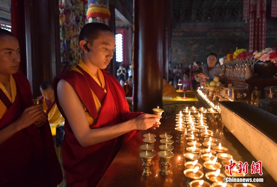 5月19日至23日,西藏少年活佛參學團來到北京參觀學習,在清代藏傳佛教皇家寺院知古鑒今。圖為5月22日,西藏少年活佛參學團到北京雍和宮參訪。
