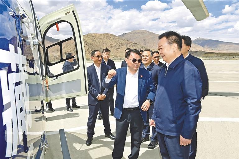 王君正認(rèn)真觀看展板,詳細聽取匯報,實地察看直升機和無人機動態(tài)演示,深入了解西藏低空經(jīng)濟發(fā)展工作推進情況。他指出,低空經(jīng)濟具有服務(wù)領(lǐng)域廣、產(chǎn)業(yè)鏈條長、業(yè)態(tài)多元等特點,是前景廣闊的戰(zhàn)略性新興產(chǎn)業(yè)。要把握機遇、乘勢而上,理清發(fā)展方向,明確工作重點,積極探索創(chuàng)新,打造低空經(jīng)濟等新增長引擎,努力為西藏經(jīng)濟高質(zhì)量發(fā)展作出貢獻。