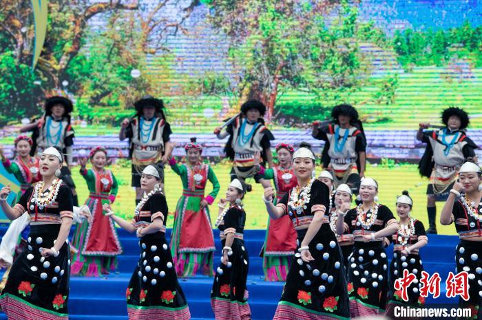 圖為開幕式上的文藝演出現(xiàn)場。貢嘎來松 攝