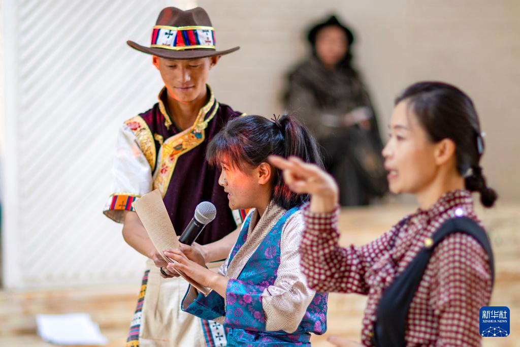 6月5日,拉薩市特殊教育學(xué)校的孩子們?cè)谛聲?shū)發(fā)布現(xiàn)場(chǎng)表演舞蹈。新華社發(fā)(旦增努布 攝)