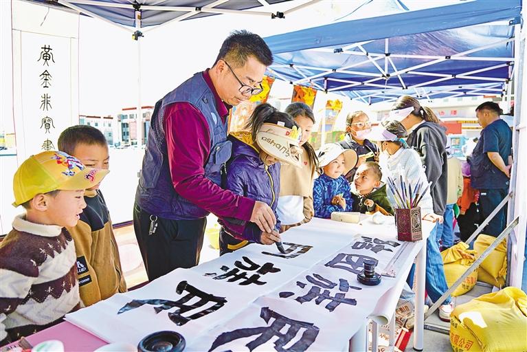 在阿里地區(qū)“文化和自然遺產日”活動中,孩子們在感受書法魅力。記者 達珍 洛桑旦增 攝