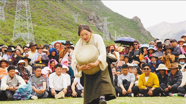“‘繽紛四季·多彩林周’活動(dòng)內(nèi)容實(shí)在是太豐富了,我們沿途觀賞到了美景,而且還體驗(yàn)了西藏民俗風(fēng)情,現(xiàn)場(chǎng)看到村民們擠牦牛奶、手工制作奶制品、指尖技藝制作酥油花等。讓我們感到震驚的是藏族大哥、大姐的力氣真是太大了,能用繩子拉動(dòng)越野車,扛起百斤重的石頭,給我們帶來(lái)了滿滿的視覺(jué)盛宴。我是第三次進(jìn)藏,這次的收獲最多,讓我體驗(yàn)到了不一樣的西藏?!眮?lái)自北京的游客張先生興奮地說(shuō)。