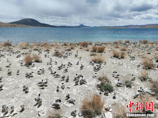 6月12日,西藏那曲市錯(cuò)鄂湖鳥島上成群的斑頭雁棕頭歐等候鳥建巢筑家,在這里繁衍生息托育后代。錯(cuò)鄂湖鳥島位于申扎縣雄梅鎮(zhèn)和馬躍鄉(xiāng)境內(nèi),是內(nèi)陸淡水湖,又名錯(cuò)俄木。這里素有“候鳥天堂”“候鳥大產(chǎn)房”之稱,最多時(shí)候鳥種類可達(dá)20多種,數(shù)量能達(dá)到4萬只左右。圖為錯(cuò)鄂湖鳥島一角。(無人機(jī)拍攝)貢嘎來松 攝