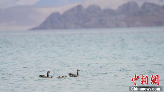 錯(cuò)鄂湖鳥島斑頭雁一家。 貢確 攝