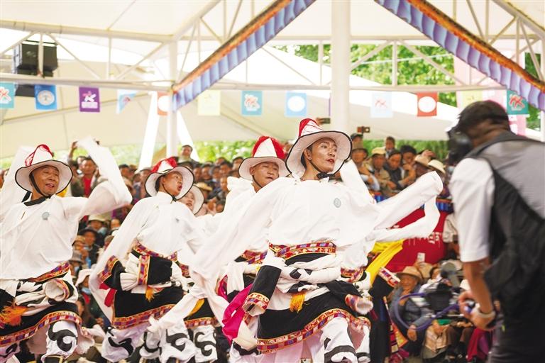“我們幾個(gè)朋友退休后就加入了鍋莊舞健身隊(duì)伍,每天清晨大家不約而同地來到宗角祿康公園,以激昂的鍋莊開始一天的生活,這樣既能鍛煉身體,又能愉悅心情,大家都特別享受這種狀態(tài)。”觀眾拉姆次仁說。