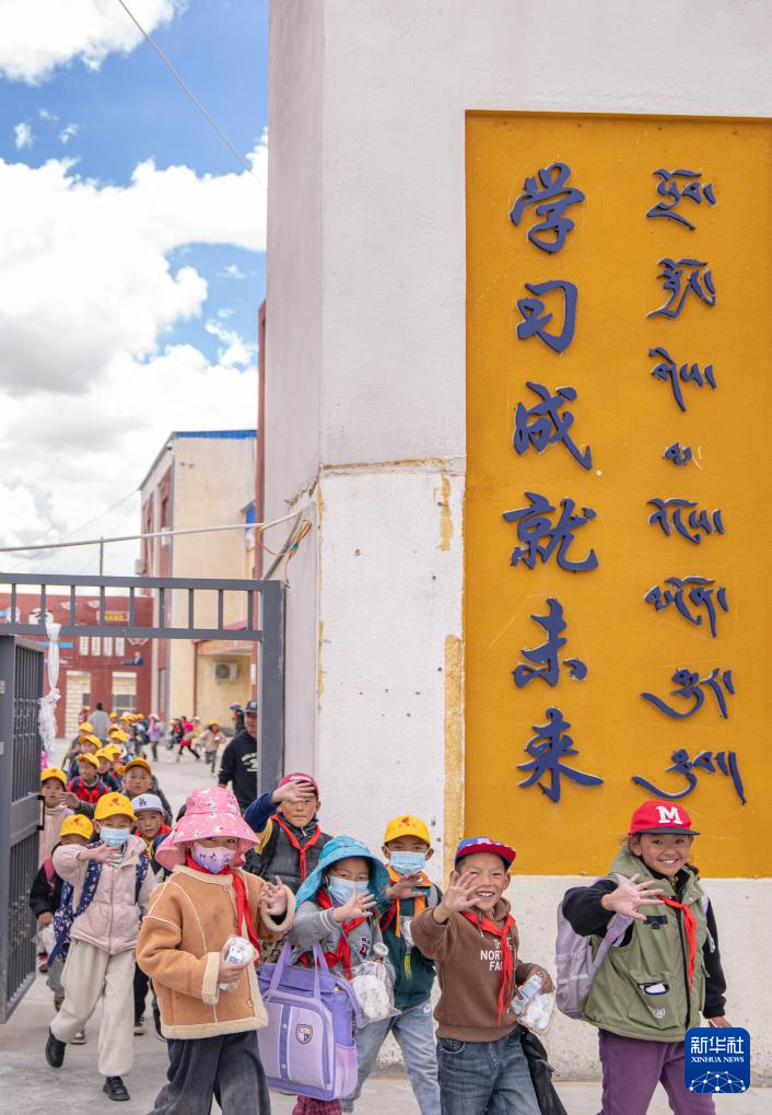 班戈縣中石化小學學生放學后走出校門(6月22日攝)。新華社記者 丁增尼達 攝