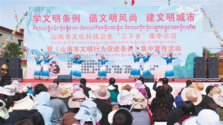 近日,山南市委宣傳部、市文明辦聯(lián)合扎囊縣委宣傳部在扎囊縣阿扎鄉(xiāng)章達(dá)村,開展了以“學(xué)文明條例 倡文明風(fēng)尚 建文明城市”為主題的山南市文化科技衛(wèi)生“三下鄉(xiāng)”集中示范暨《山南市文明行為促進(jìn)條例》集中宣傳活動。 圖為活動現(xiàn)場。記者 汪純 攝