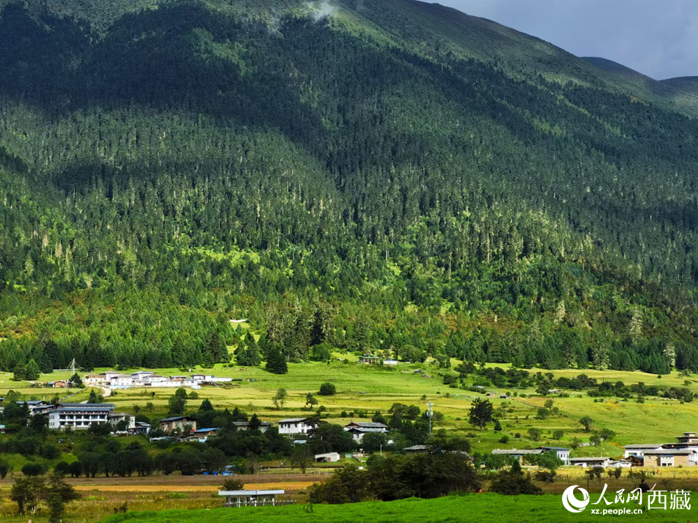 群山懷抱的扎西崗村。人民日報(bào)記者 瓊達(dá)卓嘎攝