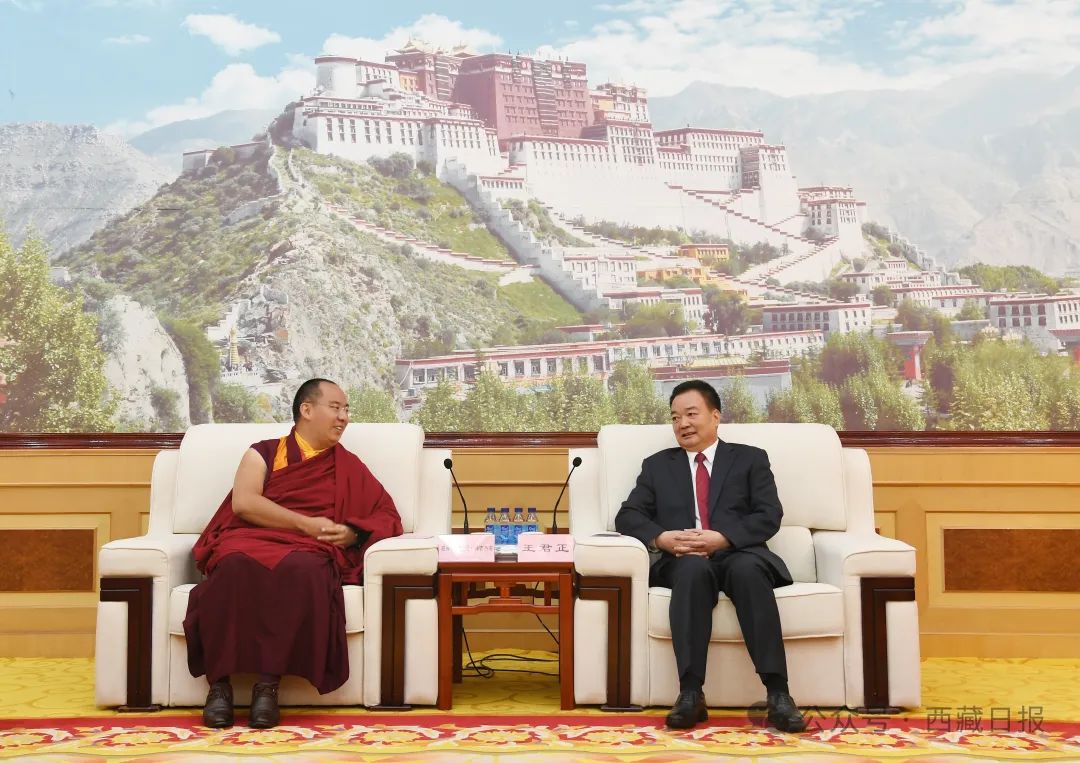 6月26日下午,西藏自治區(qū)黨委書(shū)記王君正在拉薩會(huì)見(jiàn)班禪額爾德尼·確吉杰布。