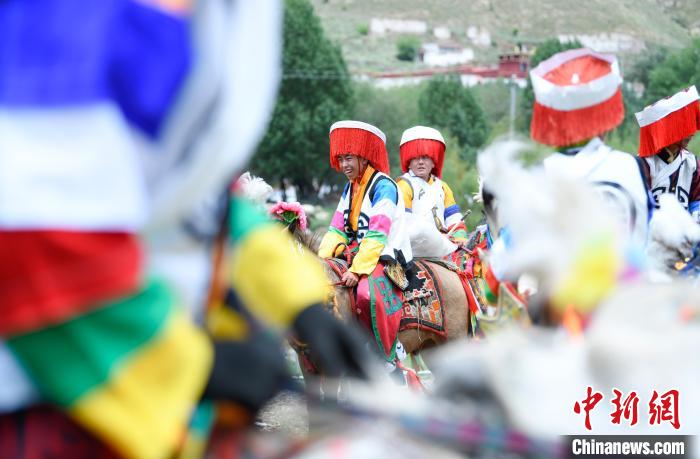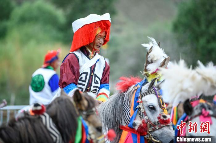 7月21日,西藏自治區(qū)拉薩市堆龍德慶區(qū)馬鎮(zhèn)朗巴村民眾賽馬歡度“望果節(jié)”?!巴?jié)”民俗已有1500多年的歷史,是國家級(jí)非物質(zhì)文化遺產(chǎn)。圖為騎手準(zhǔn)備比賽。中新社記者 貢嘎來松 攝