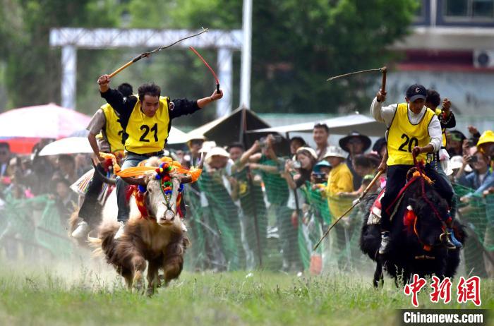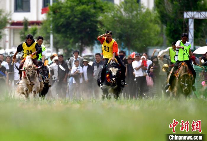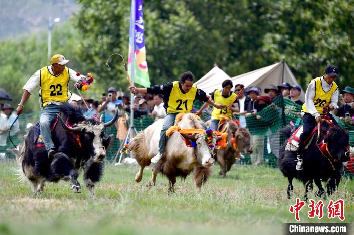 牦牛被譽為“高原之舟”,賽牦牛是藏族的傳統(tǒng)體育項目。比賽現(xiàn)場,騎手們精神抖擻,待于起跑線;發(fā)令后即馭牛疾奔,以先到終點者為勝。賽場上競爭激烈;賽場外民眾也為騎手們加油歡呼,比賽熱鬧非凡。
