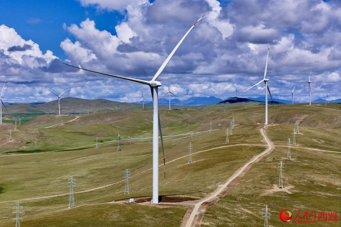 位于西藏那曲市色尼區(qū)的歐瑪亭嘎風電場。人民網(wǎng)記者 次仁羅布攝