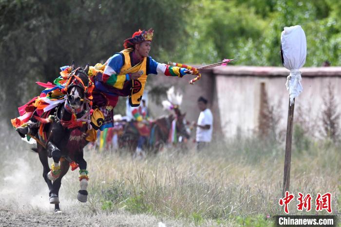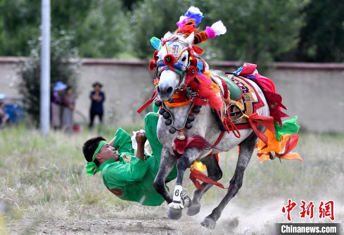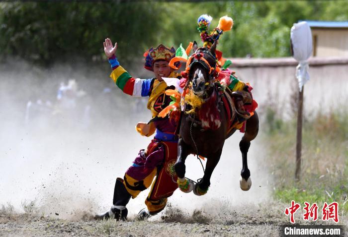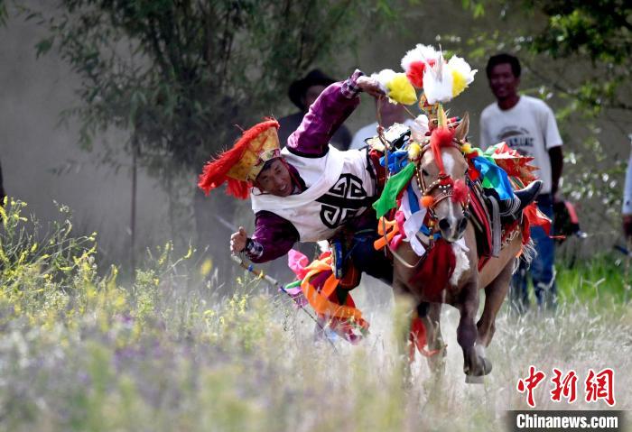 7月27日,西藏拉薩市桑達(dá)村迎來“望果節(jié)”,村民們舉行賽馬活動(dòng)慶祝。“望果節(jié)”是西藏傳統(tǒng)的豐收節(jié),具體日期隨各地莊稼成熟的時(shí)間而變化?!巴?jié)”期間,按照習(xí)俗,各地都會(huì)舉辦賽馬比賽。圖為騎手進(jìn)行馬術(shù)表演。中新社記者 李林 攝