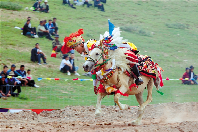 據(jù)悉,賽馬是西藏各地為慶祝豐收舉行“望果節(jié)”(賽馬節(jié))時的傳統(tǒng)慶典活動,是群眾最為喜愛、流傳最廣的體育運(yùn)動之一?!巴?jié)”作為一項具有悠久歷史的傳統(tǒng)節(jié)日,每年都會在林周縣加榮村如期舉行。