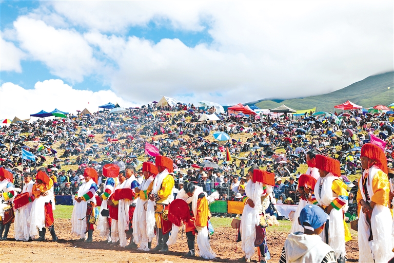 夏季的林周縣碧草如茵、風(fēng)景如畫、青稞飄香,也迎來了農(nóng)忙時節(jié)最為熱鬧的節(jié)日——“望果節(jié)”?!巴?jié)”是國家級非物質(zhì)文化遺產(chǎn),是藏民族歡慶豐收的傳統(tǒng)節(jié)日,已有1500多年歷史。此時,當(dāng)?shù)厝罕姸紩┥瞎?jié)日的盛裝,歡度一年一度的“望果節(jié)”,欣賞文藝演出、觀看賽馬比賽,歡慶豐收、歌頌美好生活,祈福風(fēng)調(diào)雨順、國泰民安、五谷豐登、吉祥如意。